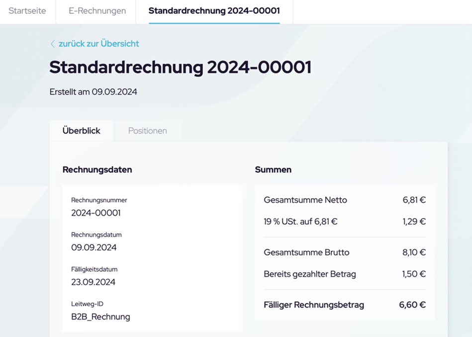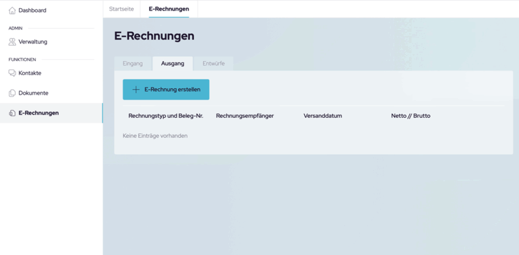 Links in der Hauptnavigation finden Sie Ihren Rechnungseingang und Rechnungsausgang unter „E-Rechnungen„.