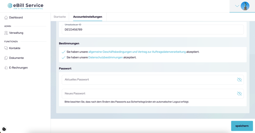 Der Verwaltungs-Bereich in eBill-Service bietet Ihnen als Administrator Ihres Unternehmensaccounts vielfältige Kontroll- und Verwaltungsmöglichkeiten. Hier können Sie Einstellungen vornehmen, Benutzer verwalten und Berechtigungen zuweisen, um die reibungslose Funktion sowie die Sicherheit des Systems sicher zu stellen.