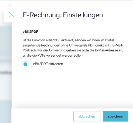 Schritt 1: Aktivierung der eBill2PDF-Funktion