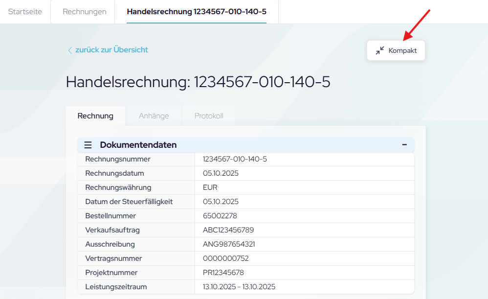 Da die Rechnungsansicht umfangreich sein kann, können Sie diese individuell anpassen: