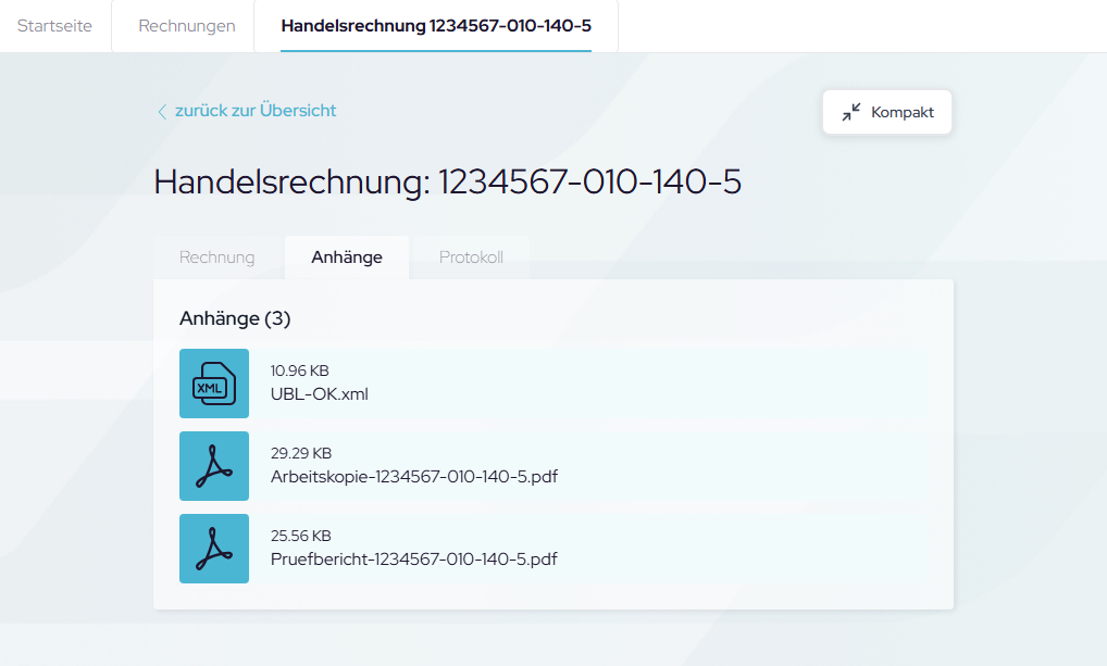 Hier finden Sie alle empfangenen E-Rechnungen, die valide geprüft wurden mit: