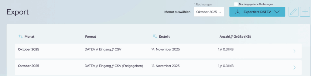Wenn alle Freigaben erteilt wurden, gilt die Rechnung als freigegeben. Im Export kann nach freigegeben Rechnungen gefiltert werden.