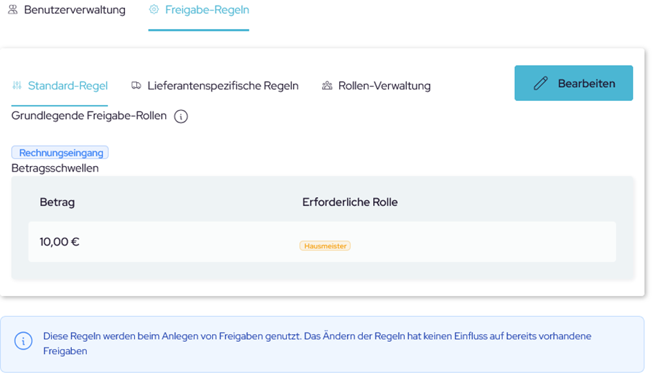 Wichtiger Hinweis- Erst ab dem Zeitpunkt der Aktivierung werden neue Rechnung in der Freigabe berücksichtigt!