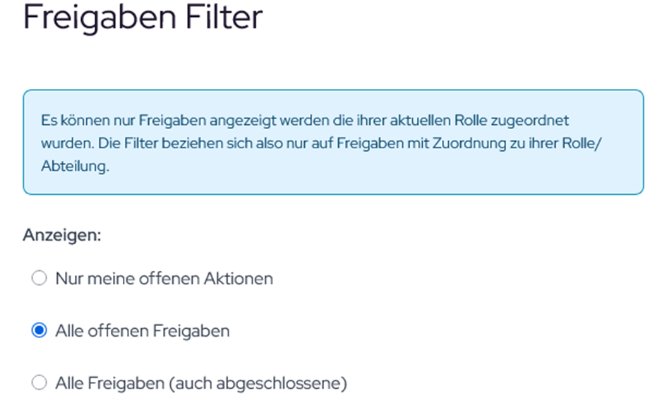 Im Bereich Freigabe können Sie über den Filter gezielt unterschiedliche Freigabearten auswählen.