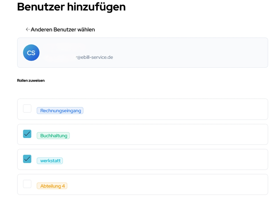 Nutzer hinzufügen, sehen und denen Rollen in eBill zuweisen