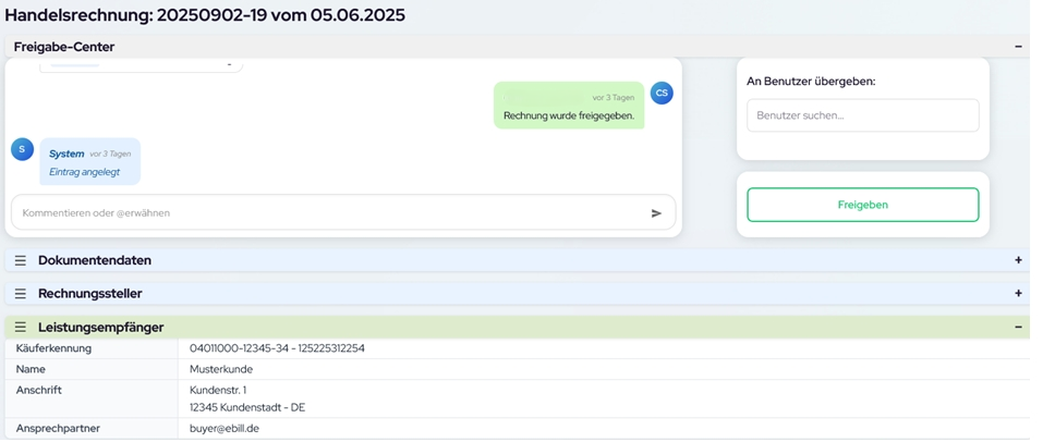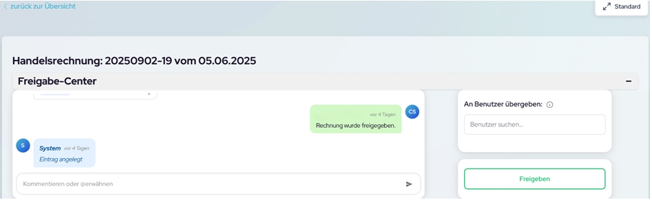 Beim Öffnen einer Rechnung gelangen Sie in den Freigabe-Center.